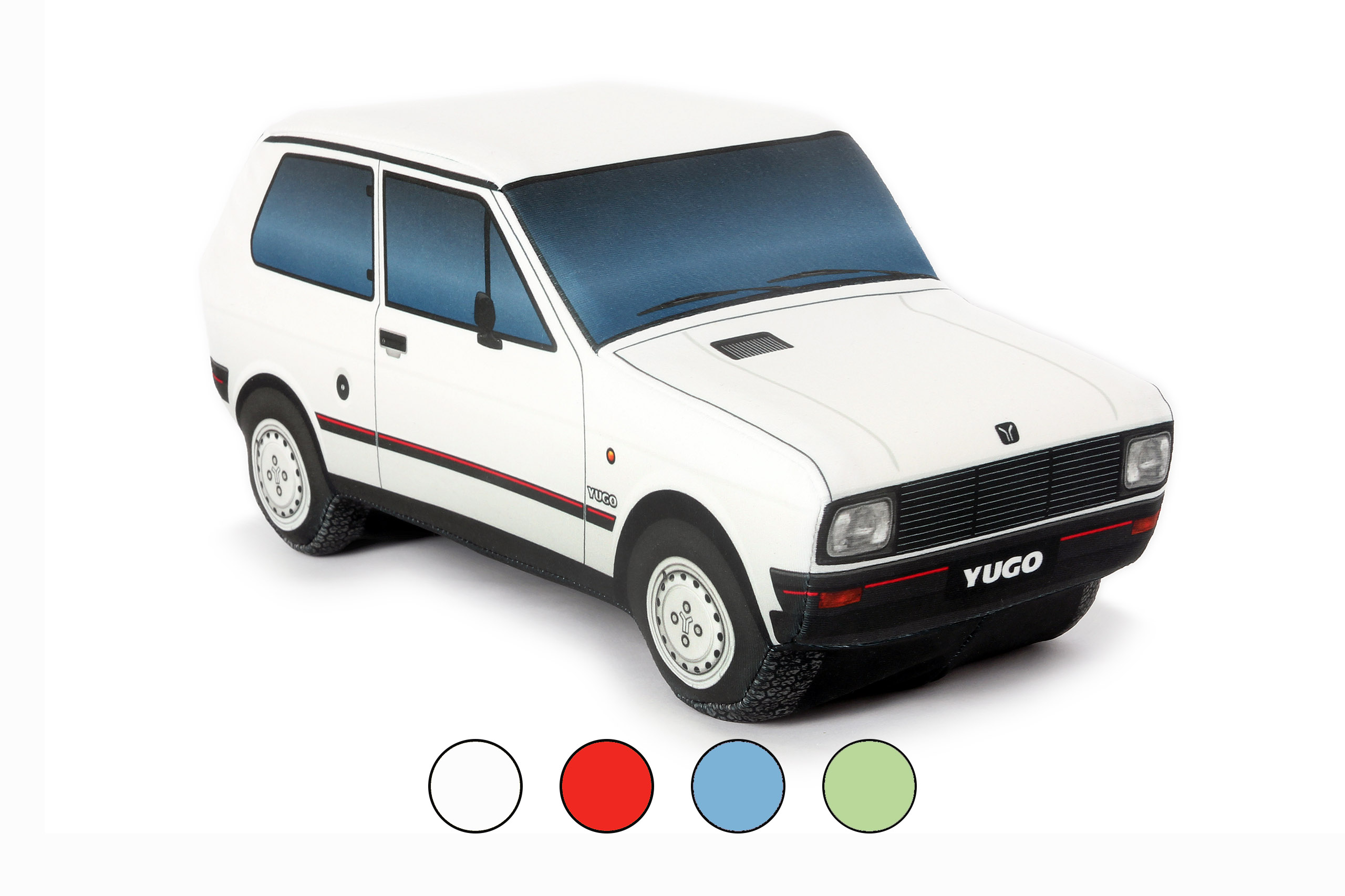 Coussin décoratif en forme de voiture populaire de l’ex-Yougoslavie. Le coussin Yugo Koral 45 est une décoration originale pour la maison, mais il peut également trouver sa place sur la plage arrière de votre voiture, où il attirera tous les regards. Ce coussin spécial sera certainement un cadeau apprécié par tous les passionnés de voitures et les nostalgiques de l’automobile.