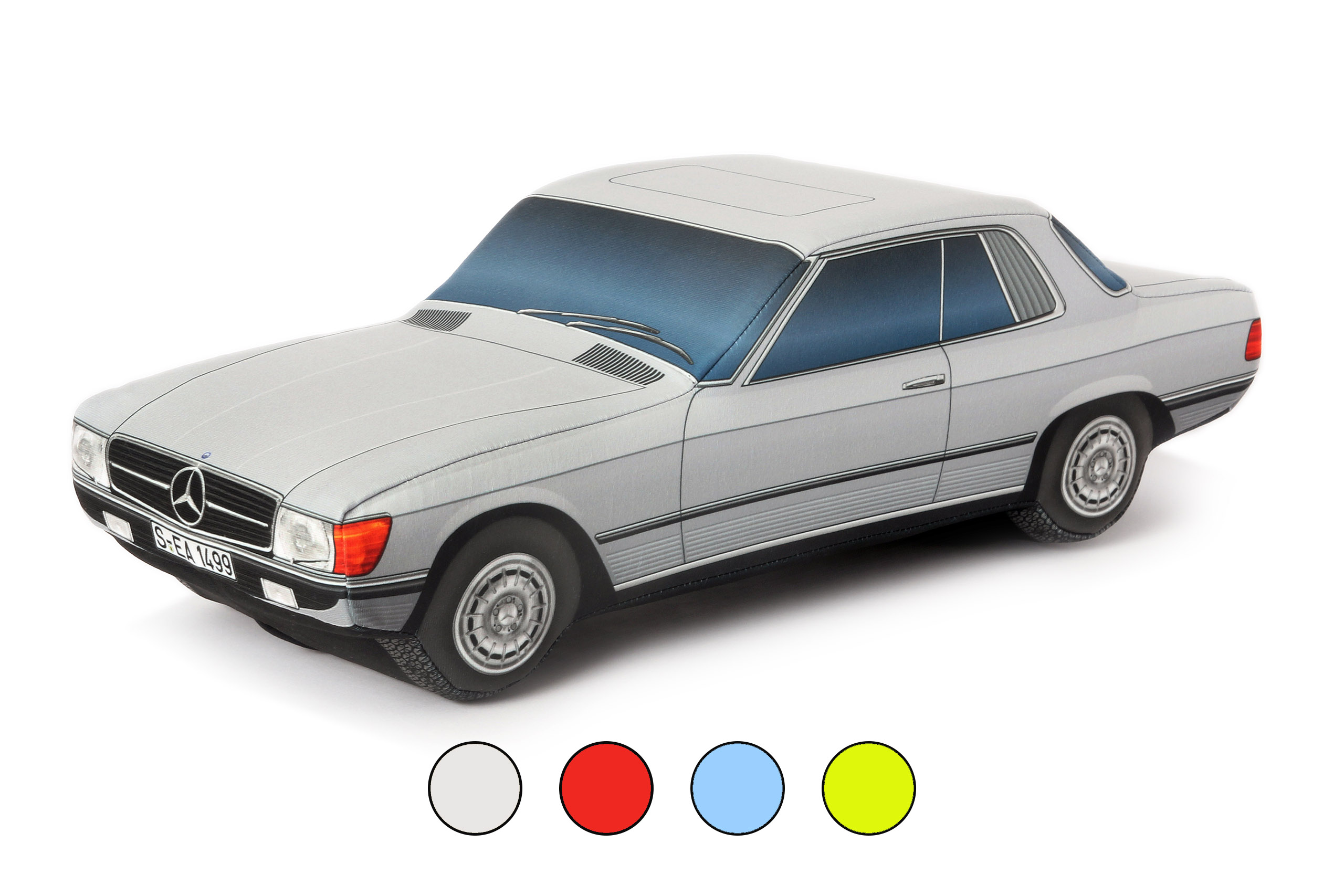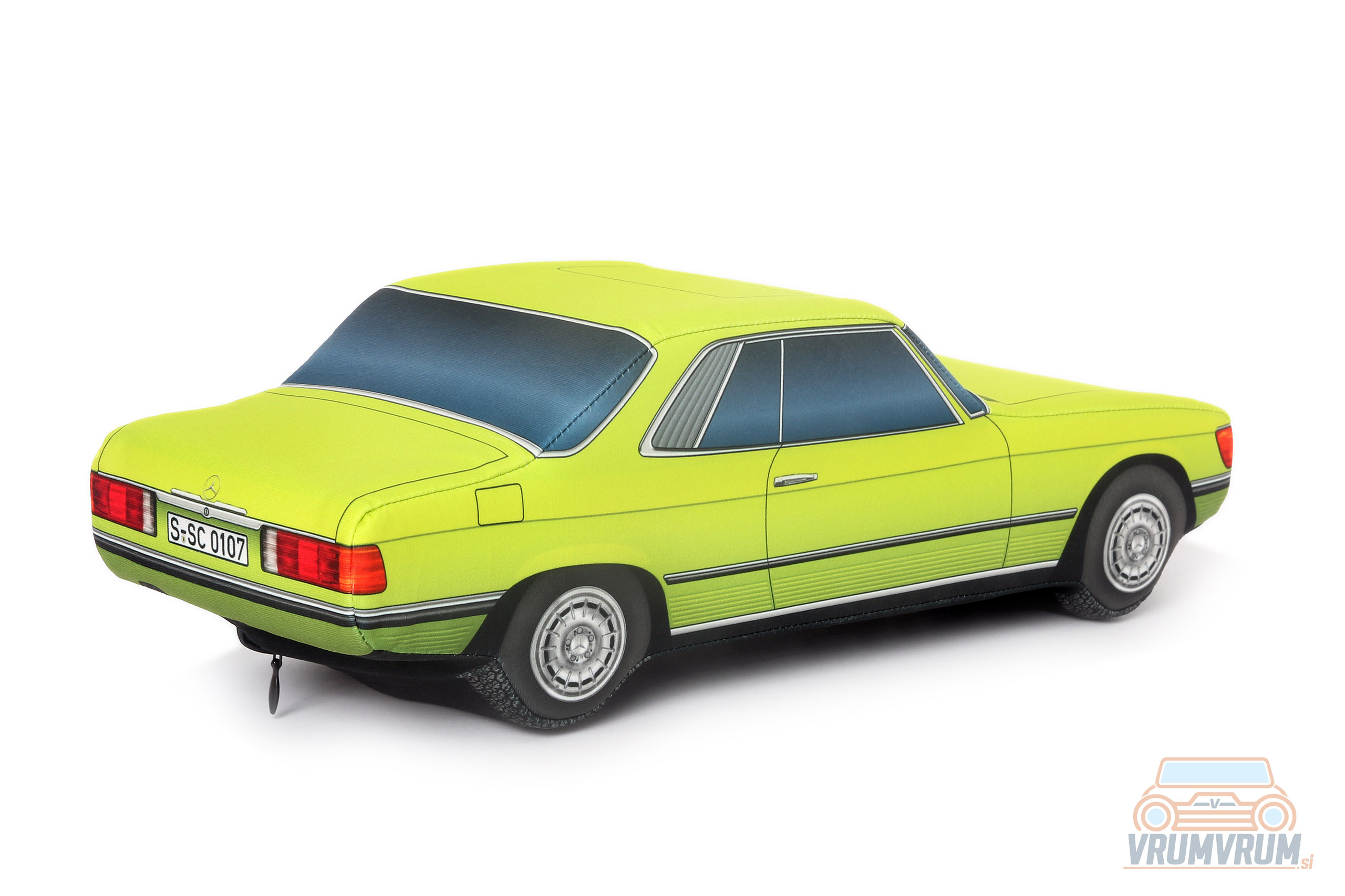Okrasna blazina v obliki avtomobila Mercedes-Benz SLC C107 je izvirna popestritev doma, lahko pa najde svoje mesto tudi na zadnji polici vašega vozila, kjer bo pravi magnet za oči. Zagotovo bo ta posebna blazina posrečeno darilo za vsakega avtomobilskega navdušenca.