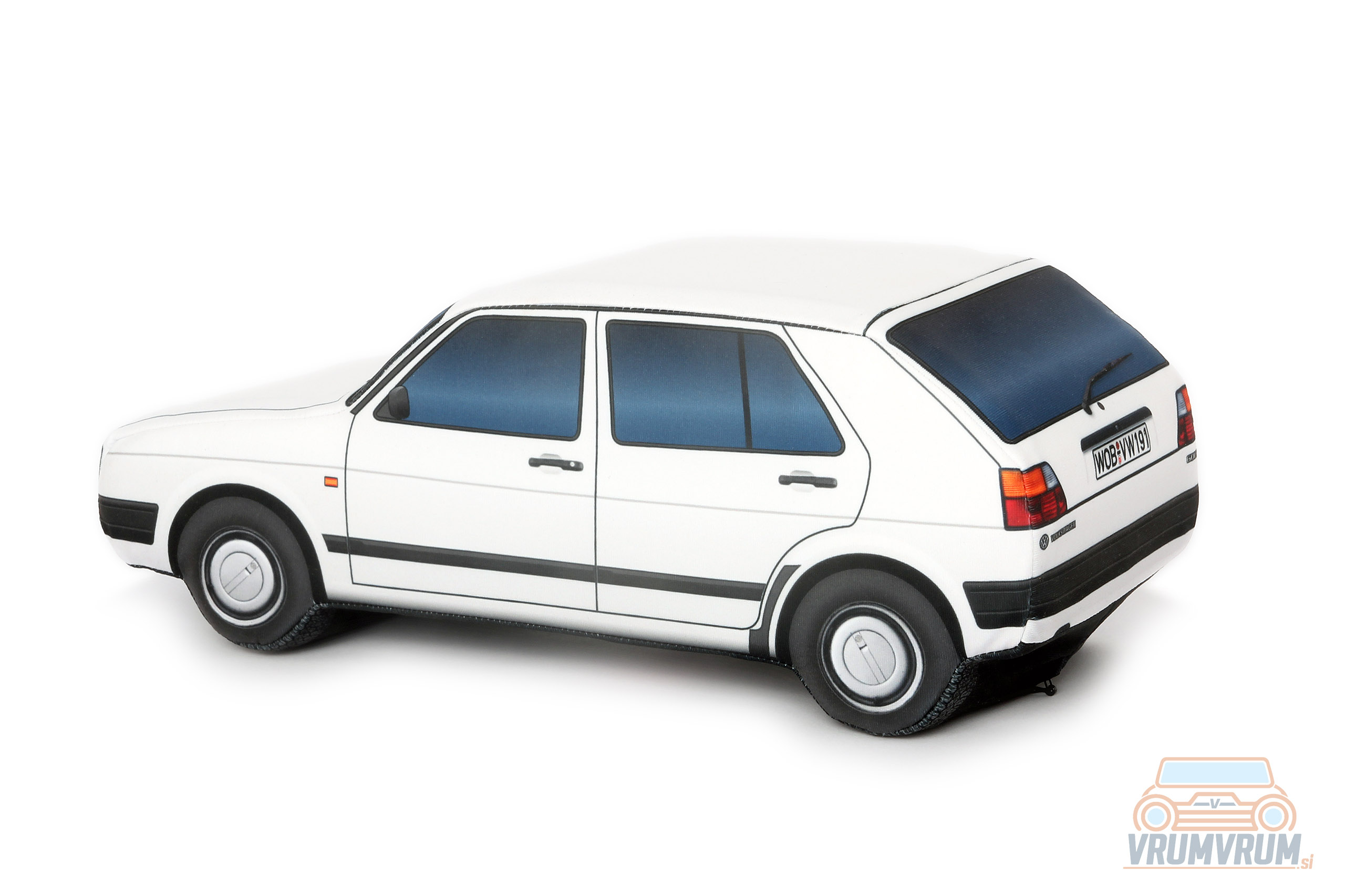 Okrasna blazina v obliki avtomobila VW Golf 2 je izvirna popestritev doma, lahko pa najde svoje mesto tudi na zadnji polici vašega vozila, kjer bo pravi magnet za oči. Zagotovo bo ta posebna blazina posrečeno darilo za vsakega avtomobilskega navdušenca.